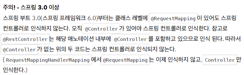 RequestMappingHandlerMapping 은 스프링 빈 중에서 @RequestMapping 또는 @Controller 가 클래스 레벨에 붙어 있는 경우에 매핑 정보로 인식한다.