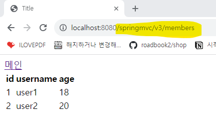 따라서 members 메서드는 HTTP GET 요청에 대한 "/springmvc/v3/members" 경로로 매핑됨.