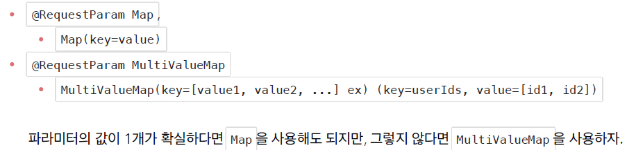 파라미터를 Map, MultiValueMap으로 조회할 수 있다.