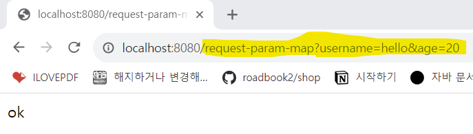 파라미터를 Map, MultiValueMap으로 조회할 수 있다.