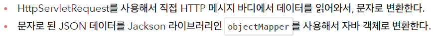 * HttpMessageConverter 사용 -> MappingJackson2HttpMessageConverter (contenttype: application/json)