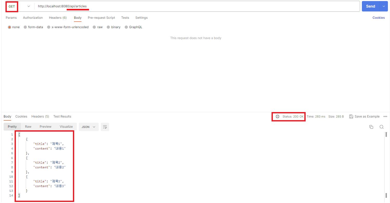 만들었으면, 요청을 받아 글 목록을 조회할 컨트롤러 작성