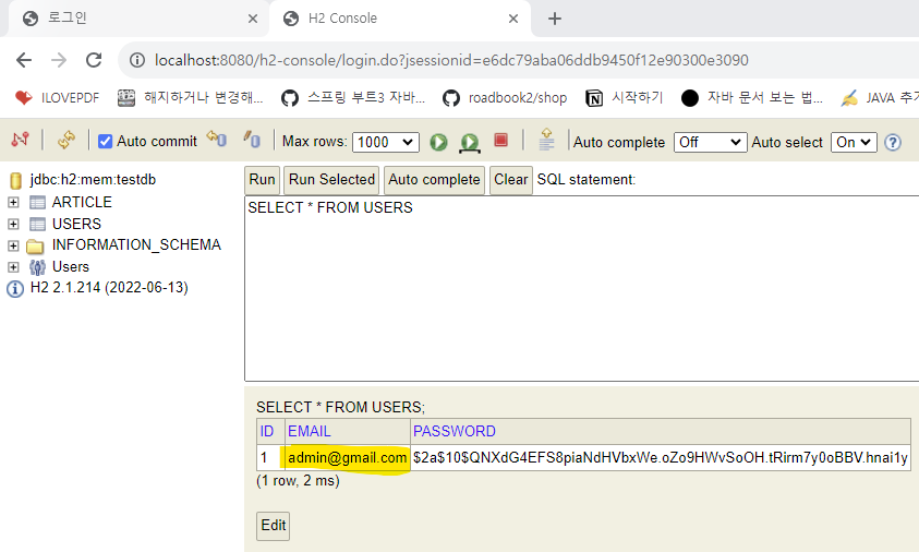 h2 콘솔 접속해서 확인해보면