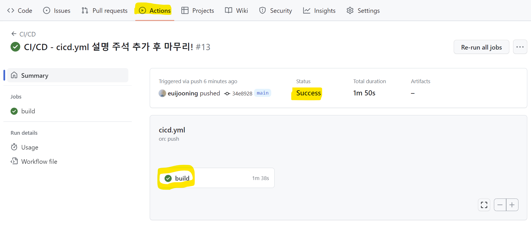 자동 배포 성공까지 확인할 수 있음.