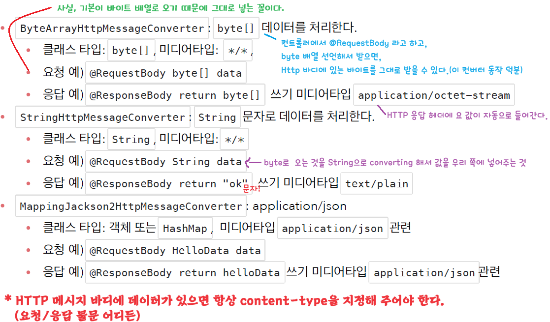 => HTTP 메시지 컨버터는 HTTP 요청, HTTP 응답 둘 다 사용된다.