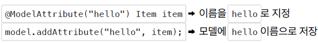 - 이름은 @ModelAttribute 에 지정한 name(value) 속성을 사용한다.