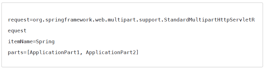 2023-09-25 14:13:20.474  INFO 24676 --- [nio-8080-exec-6] i.u.c.ServletUploadControllerV1          : request=org.springframework.web.multipart.support.StandardMultipartHttpServletRequest@36e35533