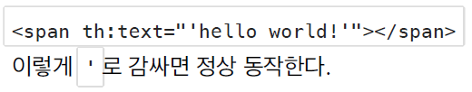 : 작은 따옴표로 둘러싸인 문자열을 Thymeleaf의 th:text 속성을 사용하여 HTML에 나타낸다.