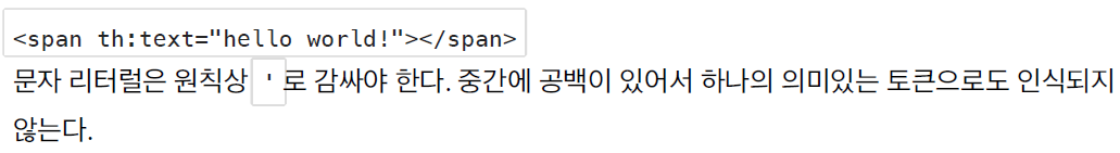 타임리프에서 문자 리터럴은 항상 ' (작은 따옴표)로 감싸야 한다.