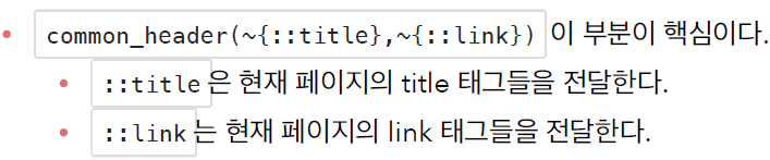 다른 웹 페이지 템플릿에서 부분을 재사용하고 필요한 타이틀 및 링크를 동적으로 설정할 수 있도록 도와주는 역할.