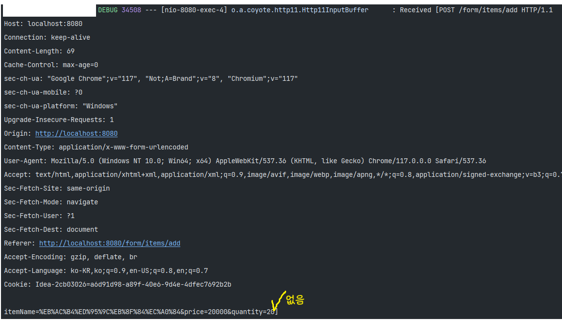 HTTP 요청 메시지를 서버에서 보고 싶으면 다음 설정을 추가하면 된다.