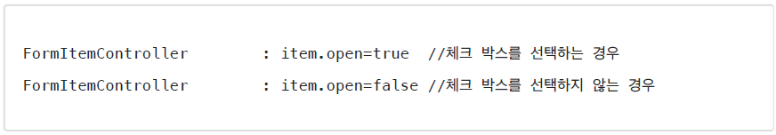 체크박스에 체크했더니 로그 찍어보니까 true로 나옴.