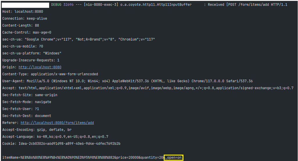 상품이 등록되는 곳에 다음과 같이 로그를 남겨서 값이 잘 넘어오는지 확인