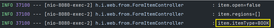 - @ModelAttribute("itemTypes"): 이 어노테이션은 메서드가 모델에 데이터를 추가하도록 지정한다.