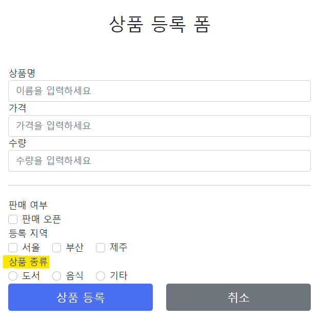 상품 등록 폼에 기능을 추가한다.