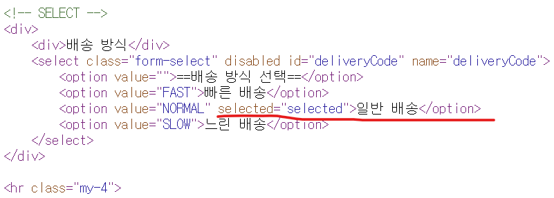 <!-- 배송 방식을 선택하는 드롭다운 목록 -->