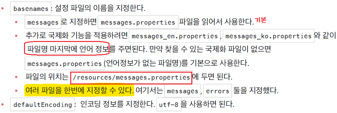 : 스프링 부트를 사용하면 다음과 같이 메시지 소스를 설정할 수 있다.