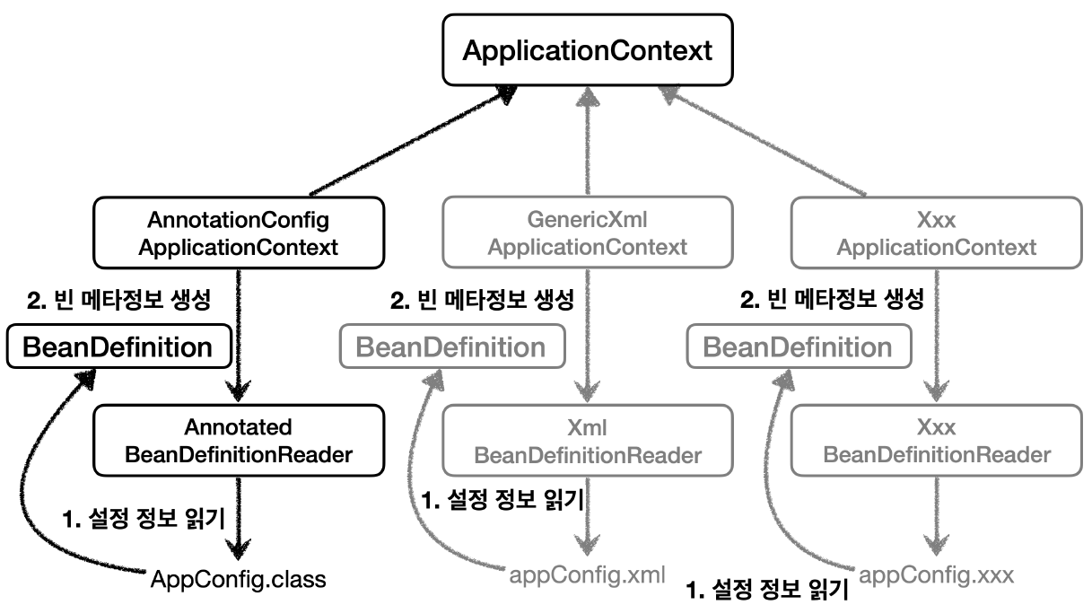 - BeanDefinition에 대해서는 너무 깊이있게 이해하기보다는, 스프링이 다양한 형태의 설정 정보를 BeanDefinition으로 추상화해서 사용하는 것 정도만 이해하면 된다.