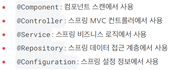 컴포넌트 스캔은 `@Component` 뿐만 아니라 다음과 내용도 추가로 대상에 포함한다.