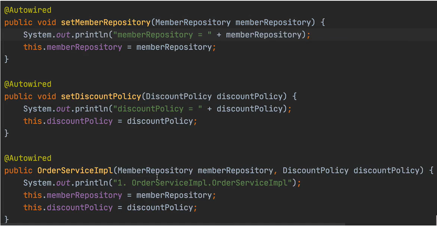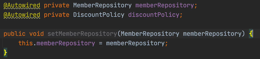 public OrderServiceImpl(MemberRepository memberRepository, DiscountPolicy discountPolicy) {