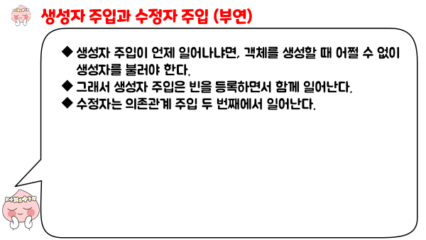 - 자바빈 프로퍼티 규약의 수정자 메서드 방식을 사용하는 방법이다.