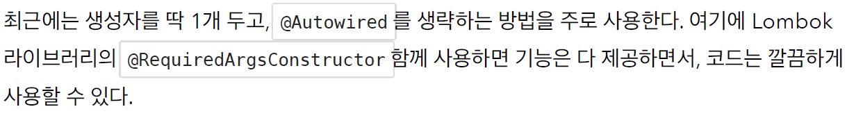생성자가 딱 1개만 있으면 @Autowired 를 생략할 수 있다.