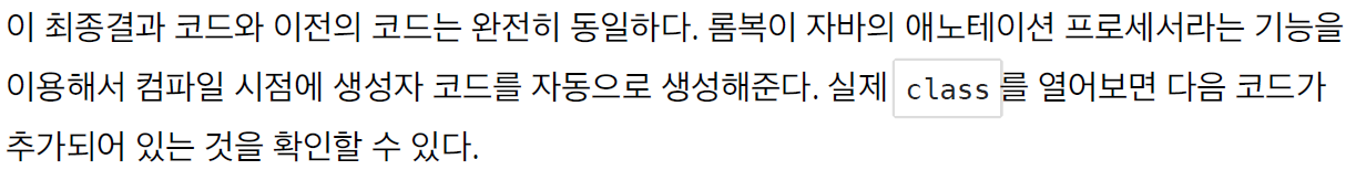 생성자를 자동으로 만들어준다. (다음 코드에는 보이지 않지만 실제 호출 가능하다.)