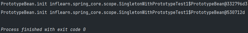 - 프로토타입 빈이 2개 생성됨을 확인할 수 있음.