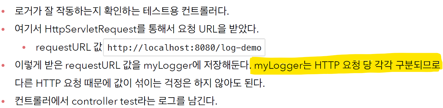 - 동시에 여러 HTTP 요청이 오면 정확히 어떤 요청이 남긴 로그인지 구분하기 어렵다.
