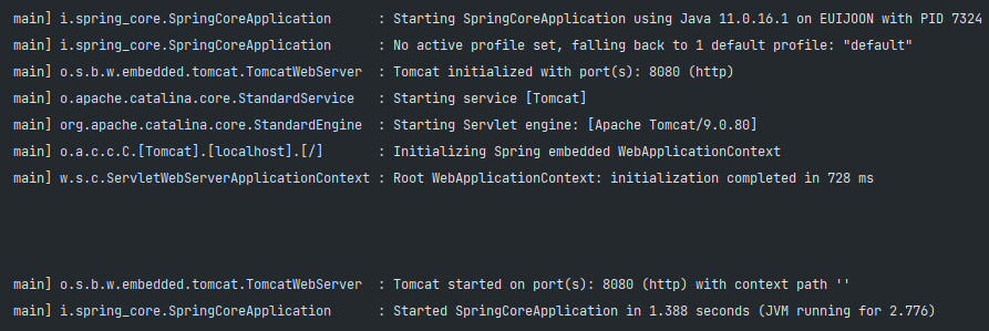 이제 다시 SpringCoreApplication 실행하면