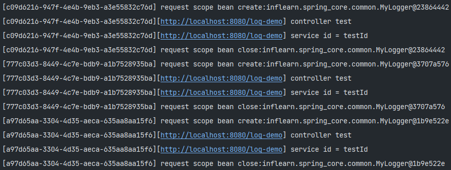 System.out.println("[" + uuid + "] request scope bean create:" + this);