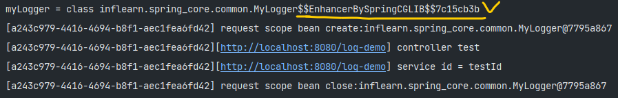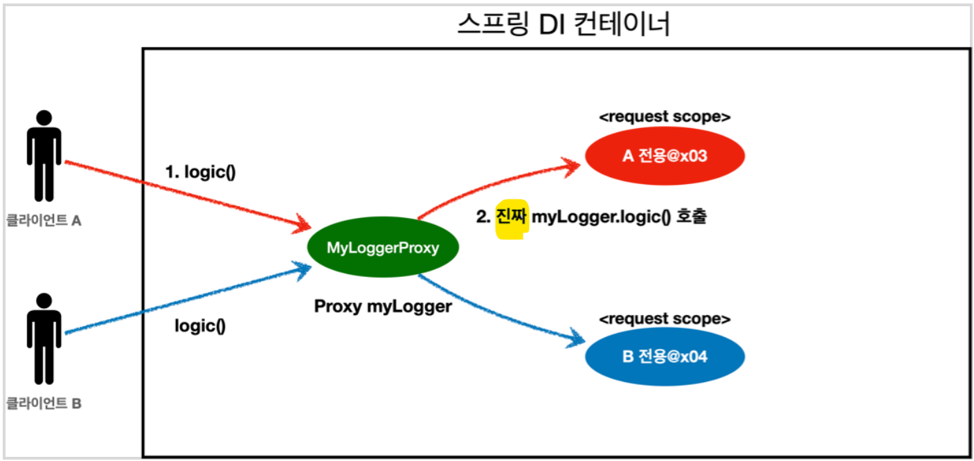 @Scope(value = "request", proxyMode = ScopedProxyMode.TARGET_CLASS) // 여기를 추가