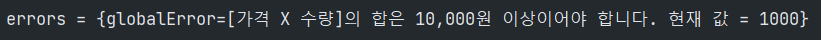 errors.put("globalError", "[가격 X 수량]의 합은 10,000원 이상이어야 합니다. 현재 값 = " + resultPrice);