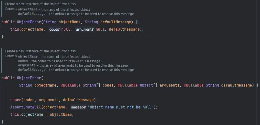# ObjectError 도 두 가지 생성자