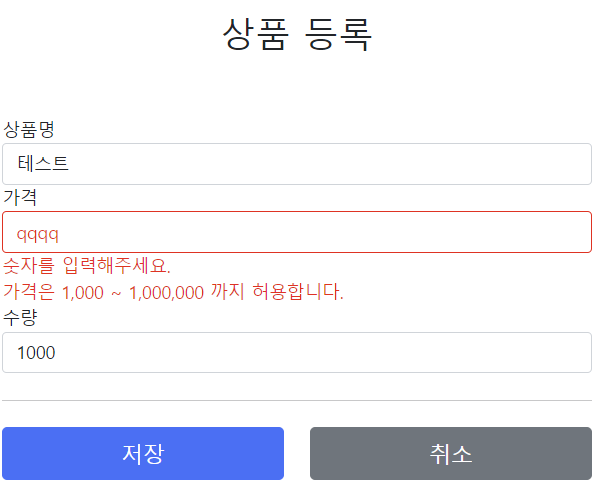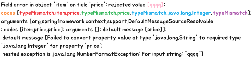 실행해보면 아직 errors.properties 에 메시지 코드가 없기 때문에 스프링이 생성한 기본 메시지가 출력된다.