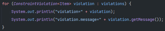 Set<ConstraintViolation<Item>> violations = validator.validate(item);