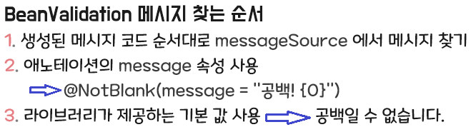 질문 : Bean Validation이 기본으로 제공하는 오류 메시지를 좀 더 자세히 변경하고 싶으면 어떻게 하면 될까?