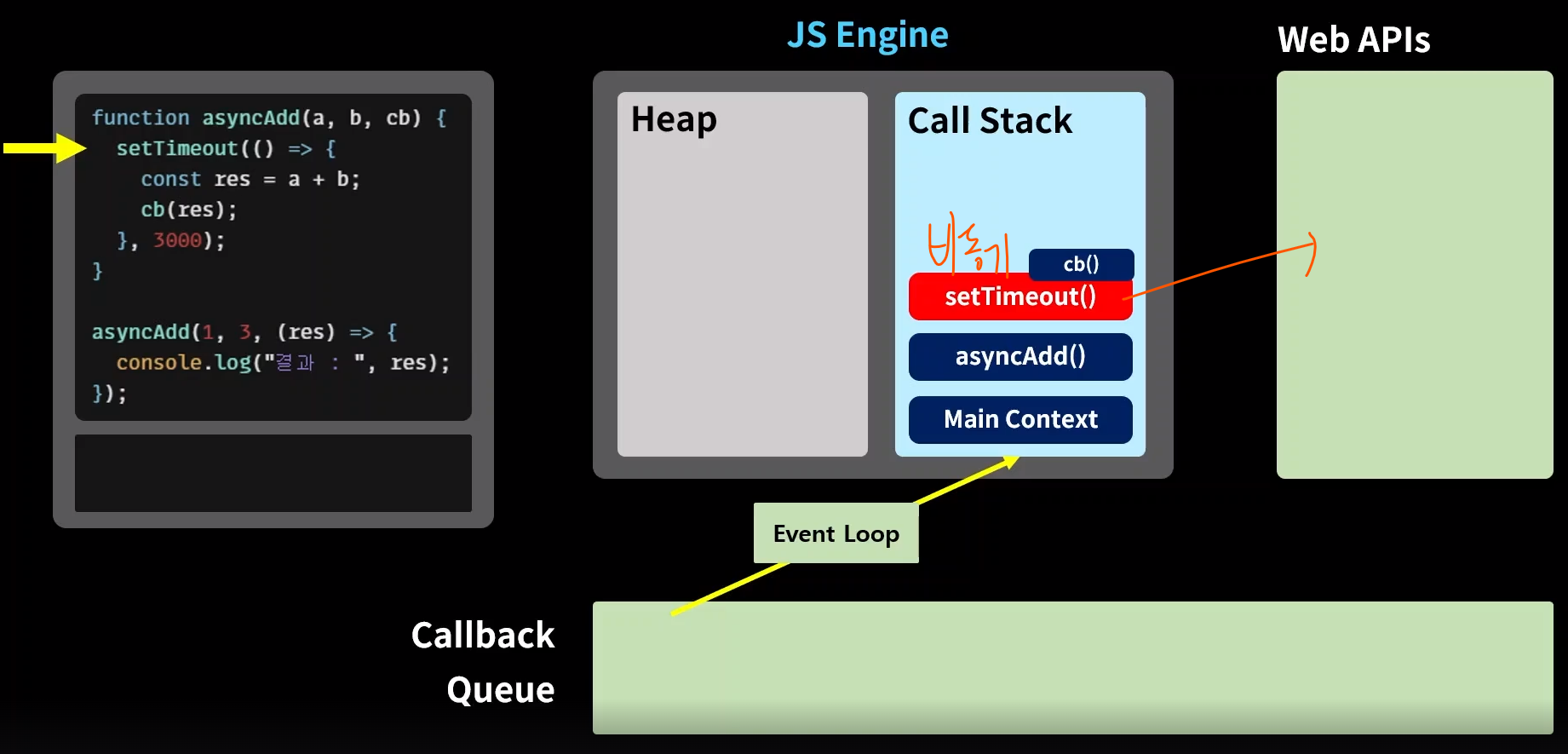 그럼 어떻게 자바스크립트 엔진은 동기적 함수와 비동기적 함수를 구분하여 사용하는가?