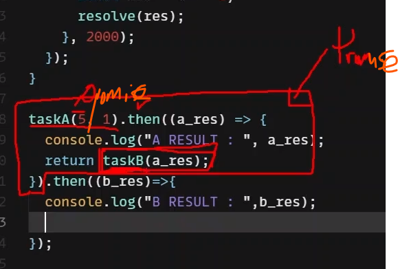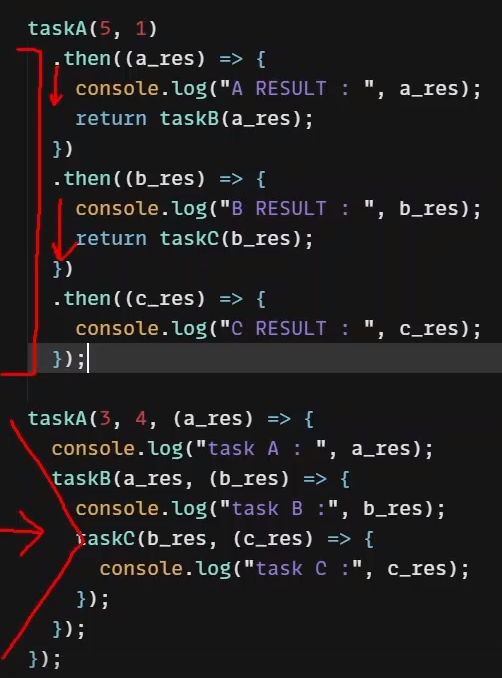 function taskA(a, b, callback) { // 파라미터와 콜백함수 추가