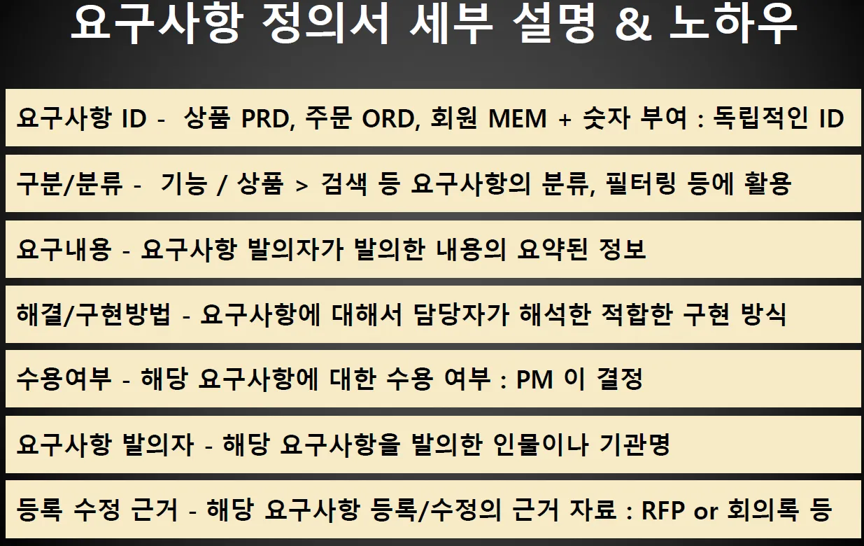 요구사항 정의서 구성 요소