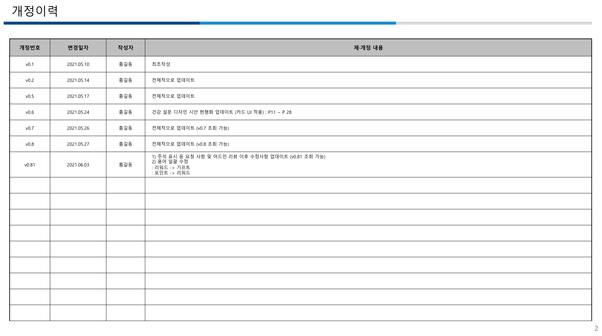 3. 변경이력과 기록 등 참고문서가 잘 첨부된 문서
