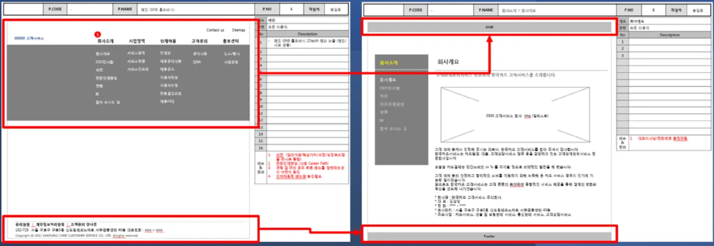 2. 공통 내비게이션 / 공통 모듈 등 '공통영역'이 잘 구분되어 있는 문서 (= 모듈 단위로 구분되어 있는 문서)