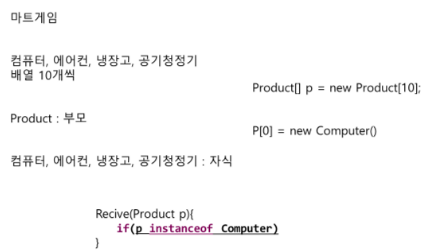 - 그러나 자식 타입의 참조변수에는 부모 타입의 객체는 들어갈 수가 없다!!!