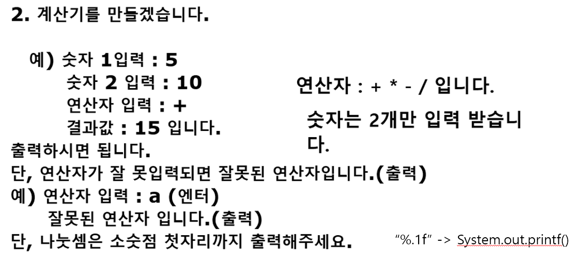 - 연산자까지 입력을 받다보니 조건문이 반드시 필요할 듯