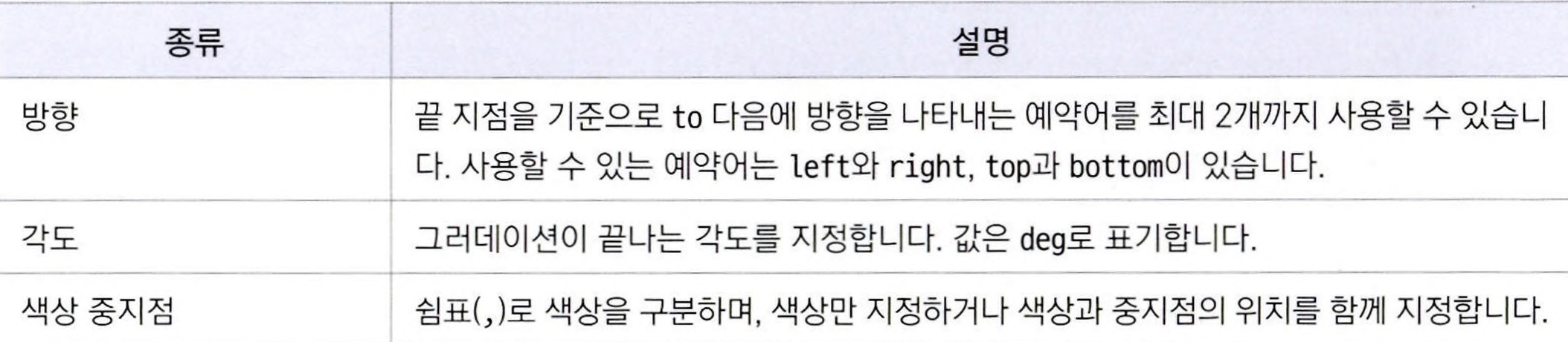 - 선형 그라데이션에서 색상이 바뀌는 방향을 알려주는 방법