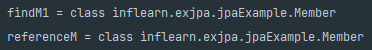 힌트 :JPA에서는 같은 트랜잭션 안에서 == 비교를 조회하면 항상 같다고 나온다.
