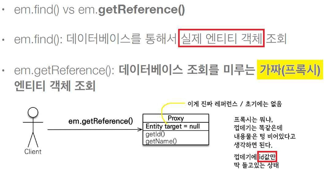 Member findMember = em.getReference(Member.class, member1.getId()); // Member