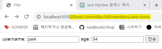 목록: http://localhost:8080/front-controller/v4/members