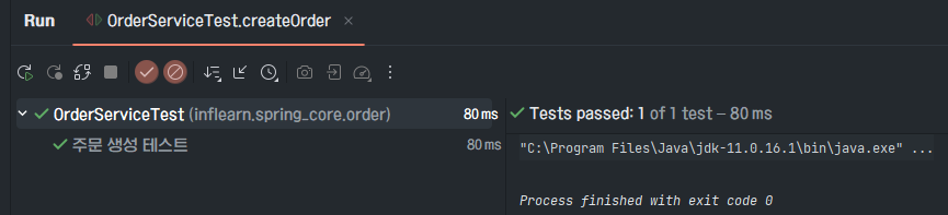 Order order = orderService.createOrder(memberId, "itemA", 10000);